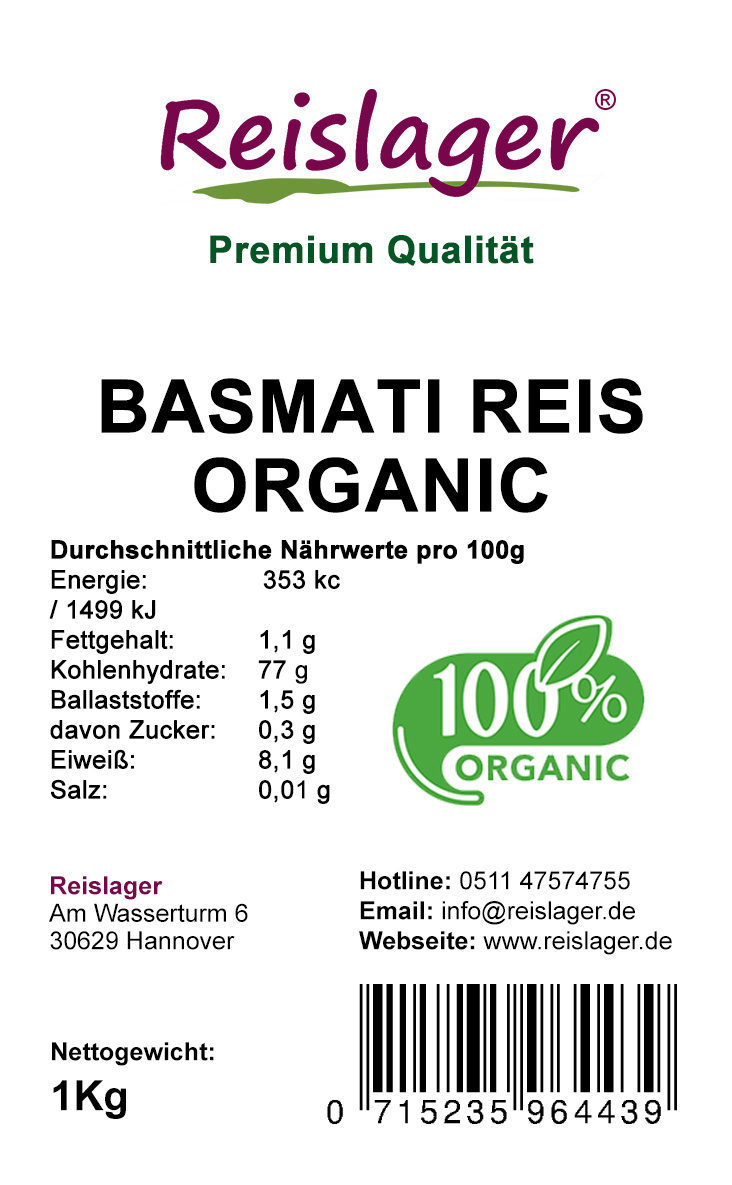 Basmati Reis aus Orient im 1Kg Bio, stammt wie viele andere Basmati Reissorten aus Indien vom Fuße des Himalaya, wo die meisten Reisplantagen beste Wachstums-Bedingungen haben. Hier sammelt der Basmati Reis seine Kraft um anschließen seine ganze Spektrum an nussigem Duft und Geschmack zu entfalten. Basmati Reis ist eine der herausragenden Sorten im -Produkt-Sortiment von Reislager. Die Reislager achtet sowohl bei der Beschaffung als auch bei der Herstellung auf einen Premium Quality Produkt ohne Pestizideinsatz.